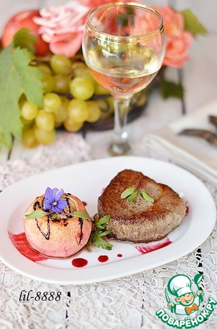 Телятина с фаршированным яблоком и малиновым соусом