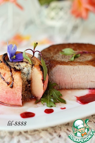 | Сегодня я хочу угостить всех телятиной в розмариновом маринаде с яблоком фаршированным бальзамиком и голубым сыром и все это с малиновым соусом. Вкусное, ароматное блюдо, готовить просто и быстро, а результат приятно порадует. |