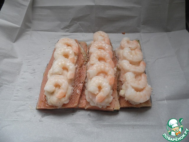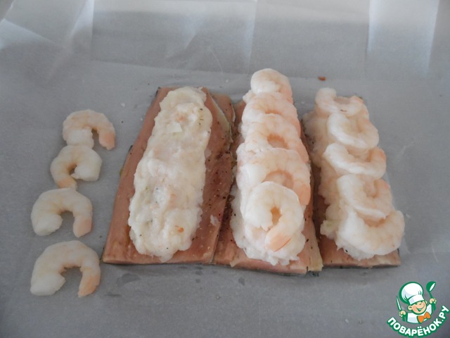 И выложить сверху фарш креветок