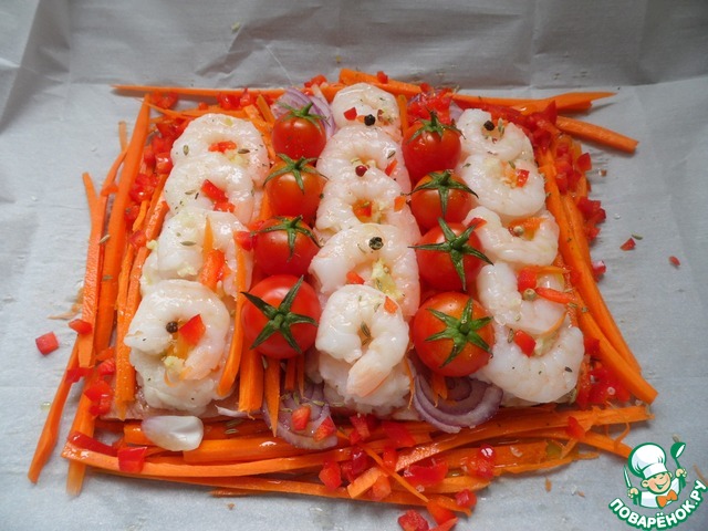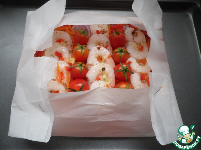 Папийот из рыбы и креветок с овощами