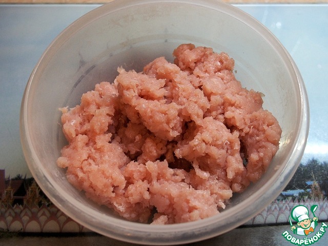 Берем грудку (сегодня у меня индейка). Из филе делаем фарш. Откладываем в отдельную посуду.