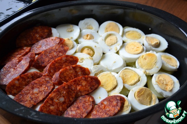 Яйца 5 шт. отварить в крутую. Остудить, почистить, нарезать