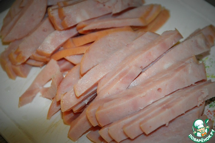 Добавить к ветчине и перемещать, + соль-перец по вкусу