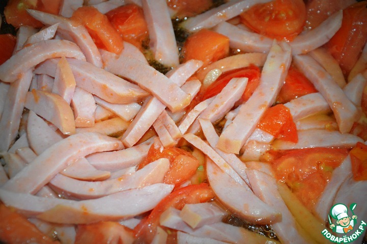 Как помидоры станут мягкими - добавить ветчину и перемешать