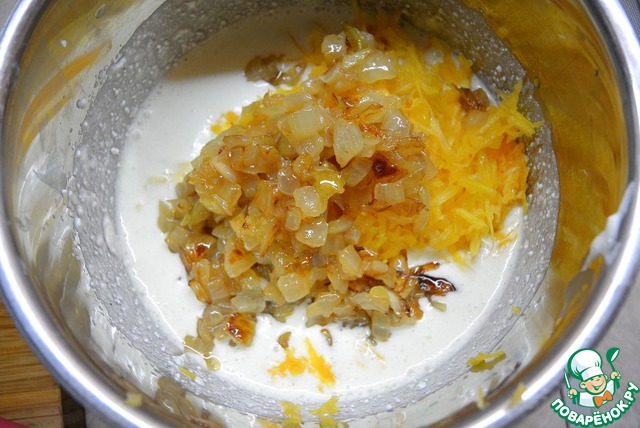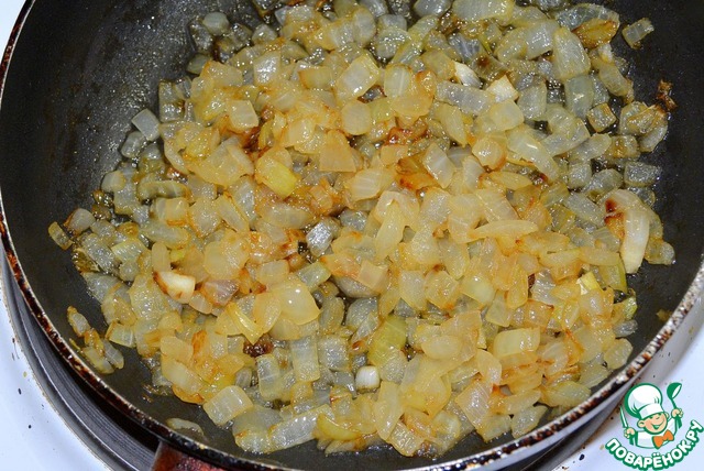 вместе с тушеным луком добавить в смесь. Перемешать.