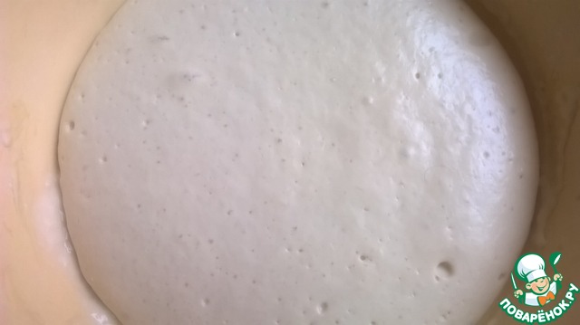 Оставить в тёплом месте. Чтобы опара увеличилась вдвое (у меня ушло на это минут 40).