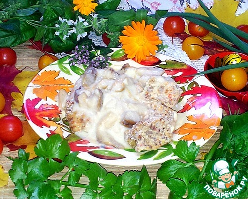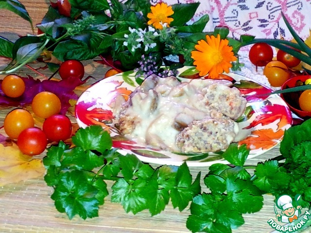 | Вкусные колбаски из гречневой крупы, цветной капусты и курицы с соусом из белых грибов. |