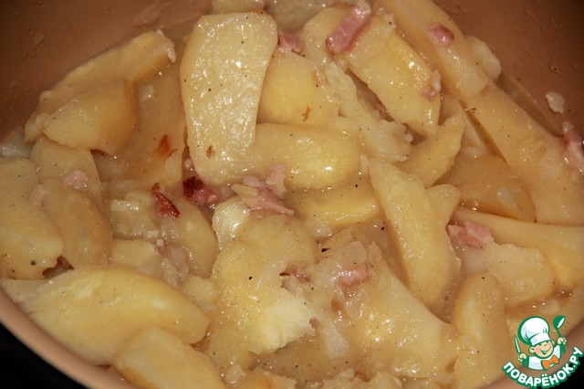 | Несмотря на такое непритязательное название, да и вид готового блюда, рецепт картофеля я нашла на одном из французских кулинарных сайтов. Так что это скорее тушеный картофель современного французского фермера. Наша семья любит картошку, и ест бесчисленное множество блюд из неё. Этот рецепт грозит стать одним из любимых, за быстроту приготовления, и на удивление приятный и несколько необычный вкус. К сожалению не подскажу какое время готовится блюдо в мультиварке без функции работы под давлением. Надеюсь найдутся смельчаки которые подскажут! |