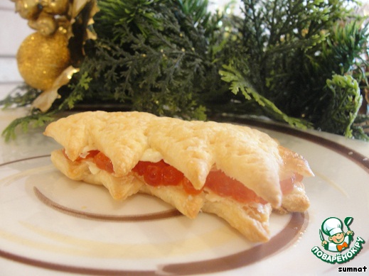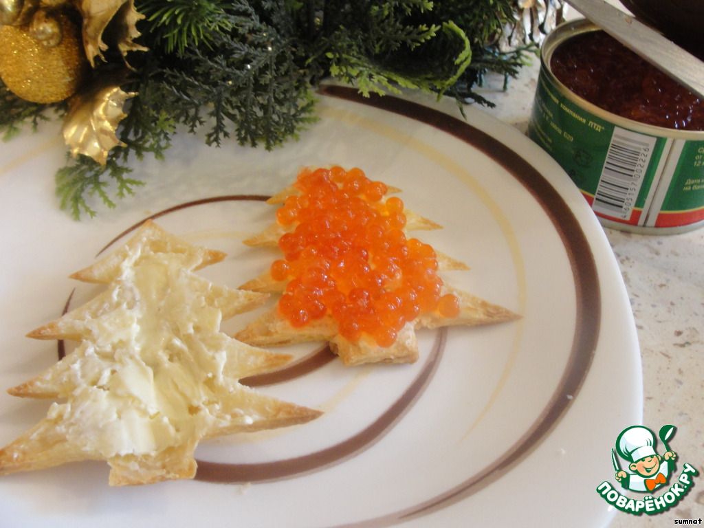 | Черный водяной Дракон, хозяин 2012 года, требует присутствия на праздничном столе морепродуктов, красного цвета и оригинальности. Первый и второй пункт выполнить несложно, ведь большинство хозяек и так поставит на новогодний стол красную икру и/или красную малосольную рыбку. Но в какой форме? Предлагаю не огорчать Дракона банальными песочными тарталетками или батонными бутербродами, а повеселить его и гостей оригинальной подачей этих продуктов. |