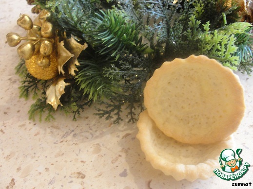 И бережно разделим на 2 части с помощью острого ножа. Работаем аккуратно, заготовочки очень нежные; разделяем их, пока они еще теплые. Если вы захотите приготовить такие елочки на Новый год, выпеките тарталетки заранее (они прекрасно могут храниться несколько дней при комнатной температуре), тогда 31 декабря вы освободите время для других важных хлопот.