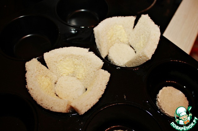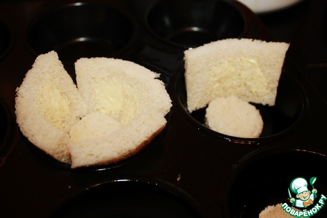 Вырезать кружочки, диаметром чуть меньше, чем дно каждой формочки.