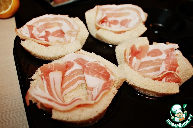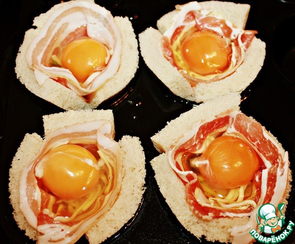 Аккуратно "вливаем" в каждую корзинку яйцо.