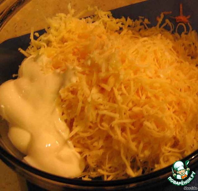 на мелкой терочке трем сыр и чеснок, смешиваем с майонезом...можно добавить одно вареное яйцо, получится нежнее:)