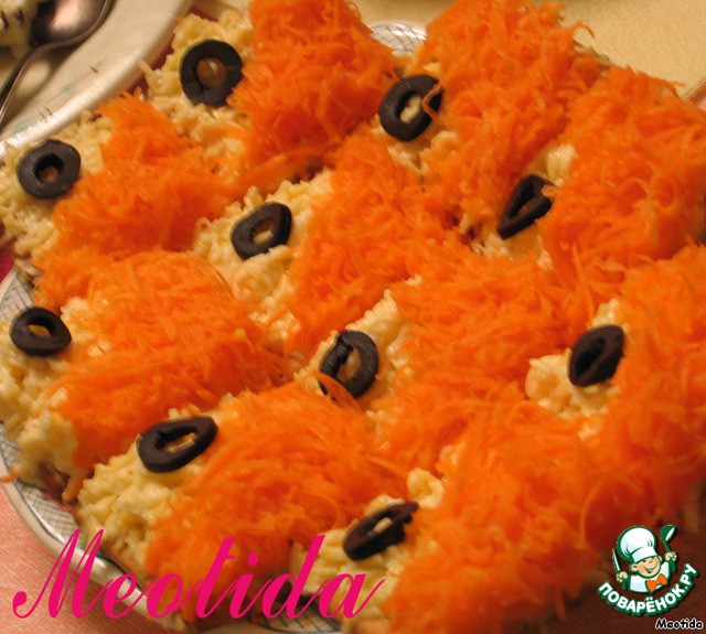 один уголочек посыпаем тертой на мелкой терке морковочкой