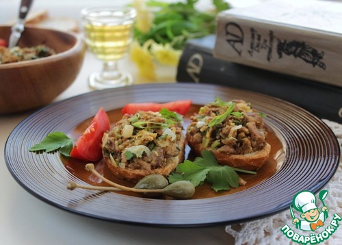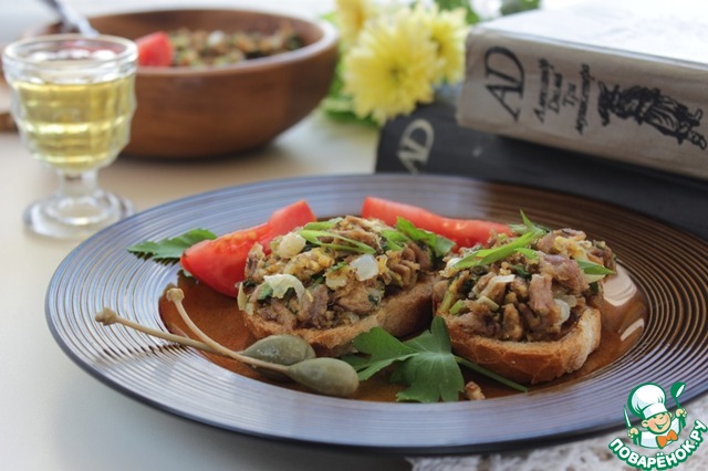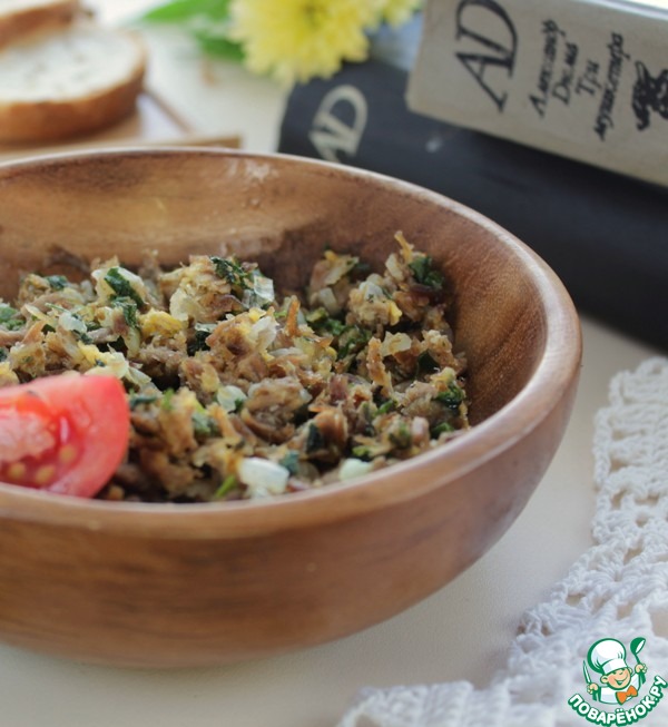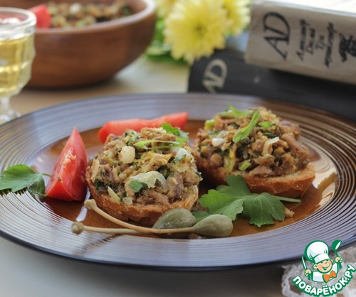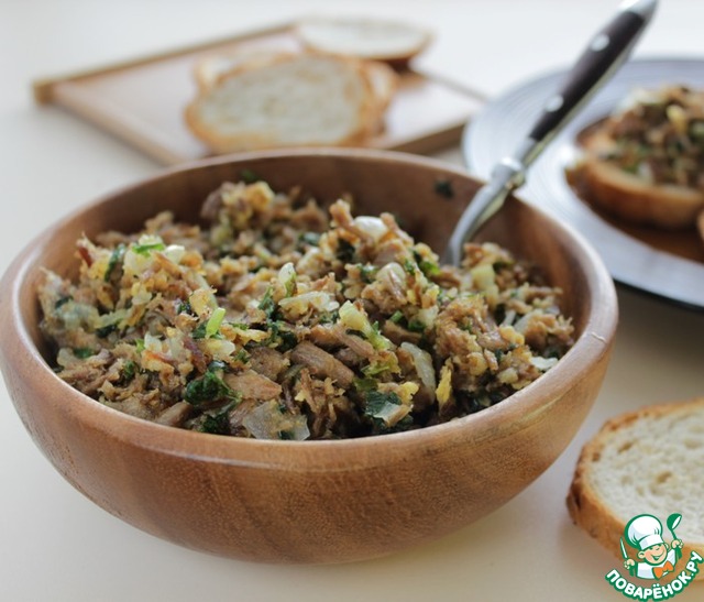 Выложите начинку на хлеб, посыпьте петрушкой.