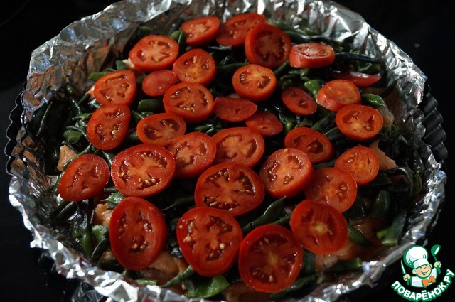 Форму застелить фольгой и смазать оливковым маслом. Если форма стеклянная или керамическая - этот шаг можно пропустить.