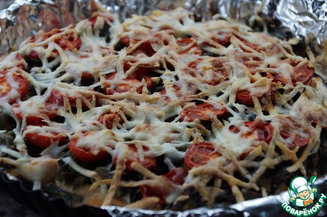 .. и затереть всё это брынзой. Поставить в разогретую до 180оС духовку на 30мин.