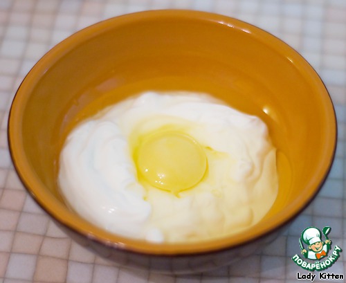 Смешать 1 яйцо со сметаной, приправить.