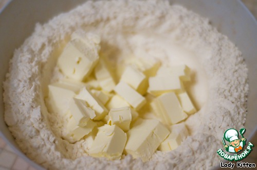 Порубить муку с маргарином, чтобы получилась крошка,