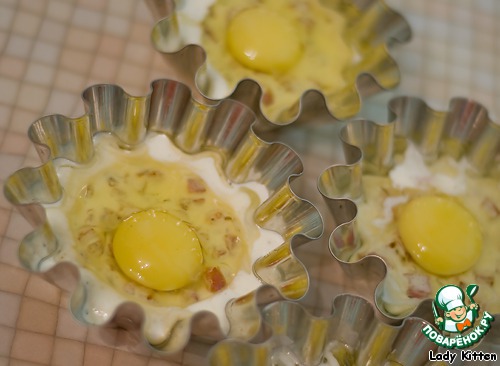 Сверху в каждую формочку разбить по 1 яйцу.