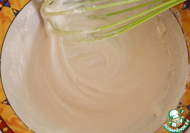 Сделать глазурь. Для этого смешать яичный белок с сахарной пудрой так, чтобы не было комочков. В конце добавить немного муки, чтобы глазурь не растекалась. Получится густая масса.