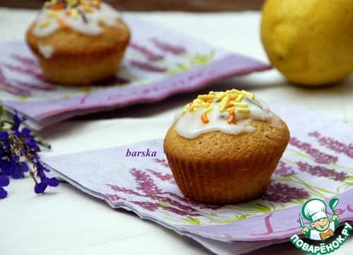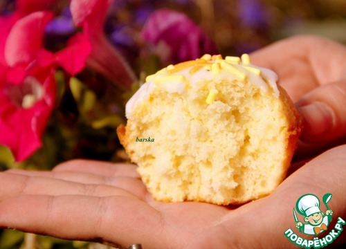 Тут же полить густой глазурью ещё теплые кексы и украсить по желанию...