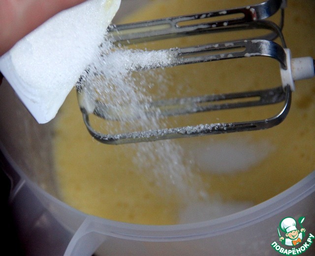 В йогуртовый стаканчик 2 раза насыпать сахар и добавить его в тесто. (Сахар прекрасно абсорбирует остатки влаги и жира со стенок стаканчика и с помощью маленькой ложечки - все ингредиенты попадают в тесто).