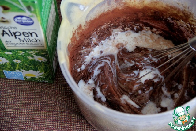 Для шоколаднх кексов: в оставшееся тесто добавить 1-2 ст. л. какао и 2-4-6 ст. л. молока, размешать венчиком, возвращаясь к предыдущей косистенции теста.