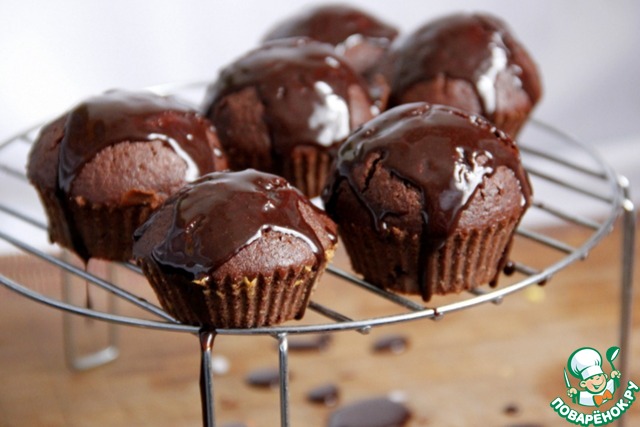 Готовые шоколадные кексы можно покрыть любимой или готовой шоколадной глазурью.