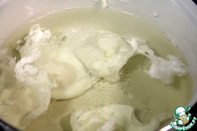 То же самое проделываем со следующим яйцом, добавляя его через 30 секунд после первого. Яйца готовы примерно через 3 минуты.