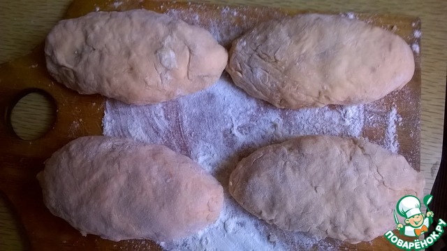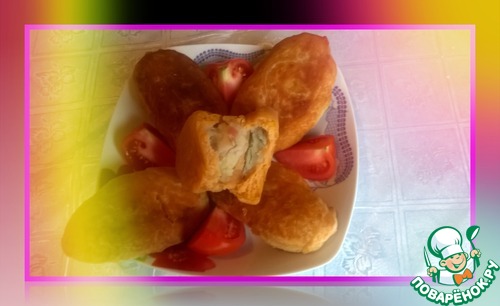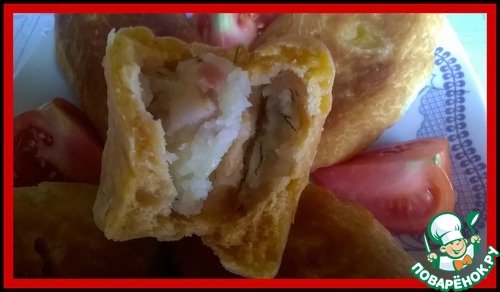 | Интересное тесто из помидоров. Получаются пышные вкусные пирожки с привкусом томата, бледно оранжевого цвета. Подходит любая начинка, кроме сладкой. У меня картошка с беконом и луком. |