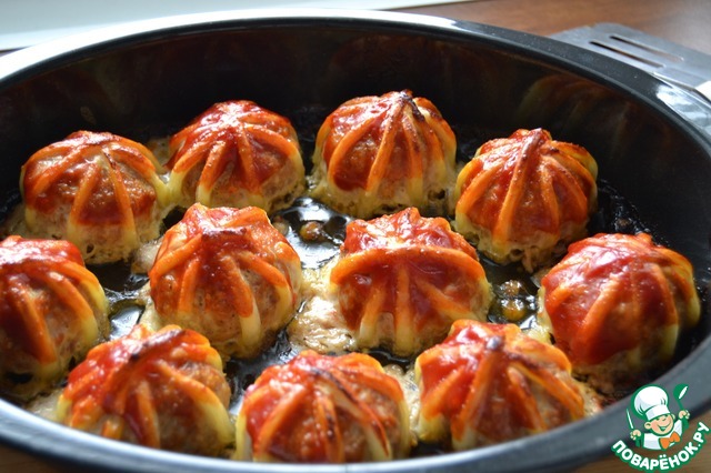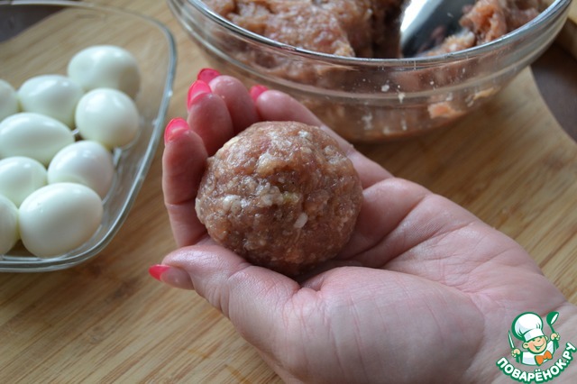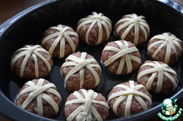 Обкрутим тестом мясной шарик.