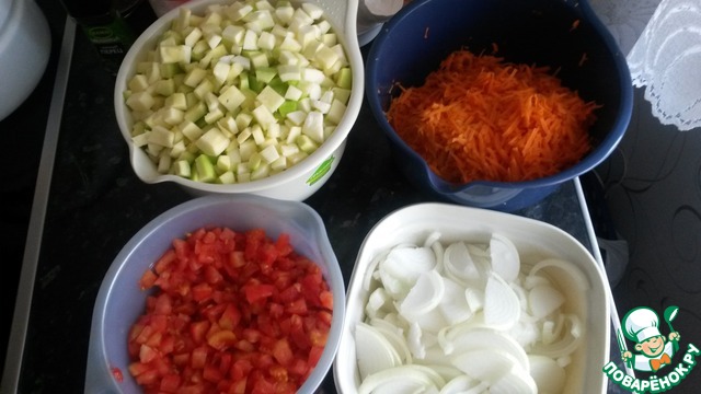 Овощи необходимо промыть, очистить. С помидор необходимо снять кожицу предварительно ошпарив кипятком. Затем нарезаем овощи: кабачки и помидоры - кубиками, лук - полукольцами, морковь натереть на терке. Все обжарить по отдельности. Кабачки нужно обжарить до прозрачности, лук - до тех пор, пока он не станет мягким, иначе в икре он будет крупинками.