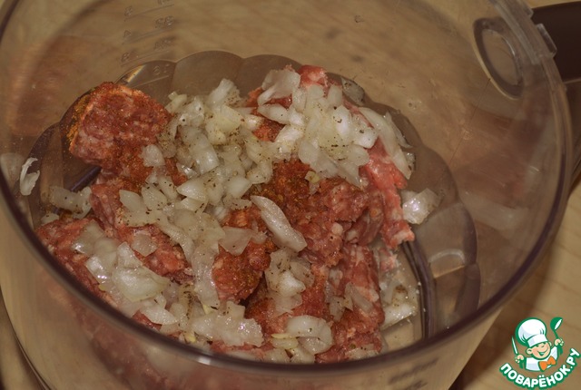 Фарш ещё раз измельчить, добавив мелко нарубленный рук, хмели-сунели (по желанию), соль и перец.