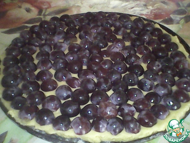 | Какой вкусный получился пирог!!! Сладкий, рассыпчатый... ммм... Почему именно из винограда? Потому что, полно его сейчас, три вида в саду висят, в обычном виде поднадоел, решила в выпечке использовать его. И не зря!!! Очень вкусно!! |