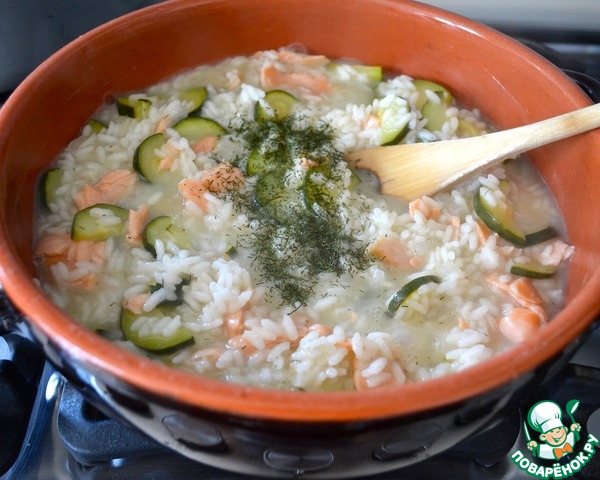 Ризотто с цуккини и слабосоленой семгой