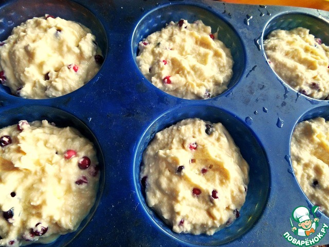 | Такие творожники пеку много лет. Как только привезли мне силиконовые формы, так посоветовали этот рецепт! Добавки долго перечислять, но зимой пеку с сухофруктами и яблоком, а сейчас-со свежей, собранной мной, брусникой))) Любые ягоды взаимозаменяемы, я даже с клубникой пекла. С такими кексами не стыдно идти в гости или испечь к приходу подружки или просто порадовать семью в выходной день! |