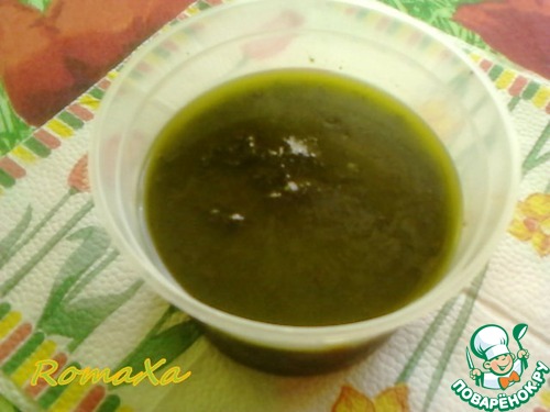 1. Всю зелень, которая есть, поместить в стакан для блендера: у меня стакан 1 л, а из зелени салат листовой, шпинат, базилик, кинза, укроп и мята. Влить масло, так, что бы покрывало зелень на половину, добавить чеснок, соль по вкусу и перемешать всё тщательно блендером