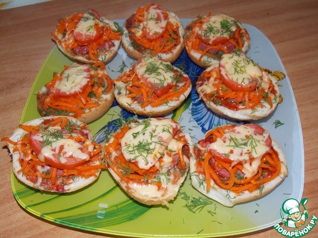 Хрустящие мини пиццы готовы. Приятного аппетита.