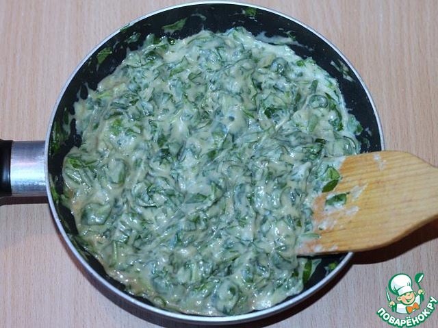 и мелко порезанный шпинат. Консистенция теста должна быть плотной массой, как заварное тесто.