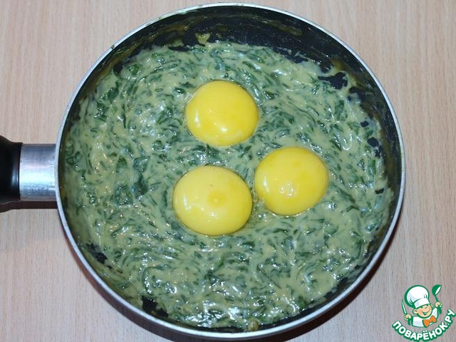Остудить зеленую массу и добавить 3 желтка, перемешать.