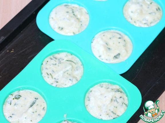 Прямоугольный противень застелить пекарской бумагой и равномерным слоем выложить шпинатную массу. Можно разложить массу в порционные формочки. Выпекать при температуре 200 гр приблизительно 20 минут.