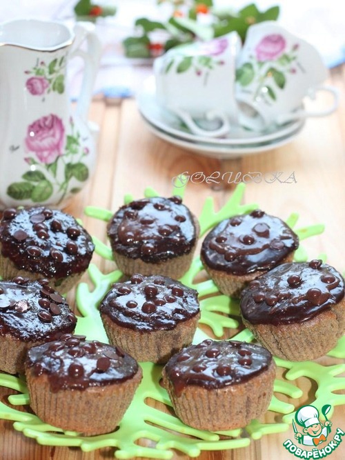 Нанести глазурь на горячие кексы. Готовые и остывшие кексы можно посыпать сахарной пудрой или украсить шоколадными дропсами. Я правда дропсы посыпала на теплую глазурь и они у меня хорошо подтаяли, но на вкус это не повлияло, только на фото.
