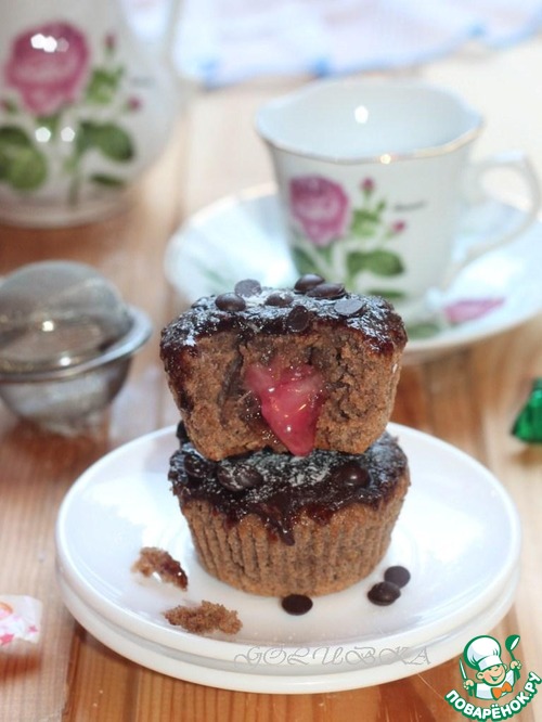 | Получаются очень нежные, шоколадные кексы с карамелью в внутри. Карамель может быть любая. Готовить очень просто, а получается очень вкусно! |