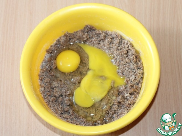 Добавить куриные яйца. Перемешать.