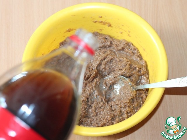 Затем понемногу влить кока-колу, тщательно размешивая.