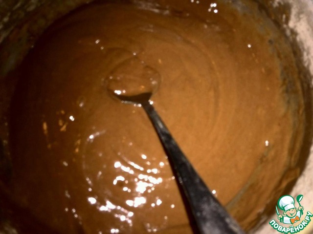 Взбиваем 3 яйца с 1 стаканом сахара до светлой пенки. Добавляем 1 стакан муки просеянной с 1 ложкой столовой крахмала. Тщательно перемешиваем. Туда же пол чайной ложки соды погашенной с 1 ч. л. уксуса. перемешали. форму выстелаем бумагой для выпечки/запекания, смазываем ее маслом растительным. В форму выливаем наше тесто. Оно у нас получилось как густая сметана. И ставим в предварительно разогретую духовку до 200гр. на 25-30 минут. Первые 20 минут не заглядываем в духовку, чтоб корж не опустился. Второй корж готовим точно так же только добавляем в него 2 ст. л. какао.