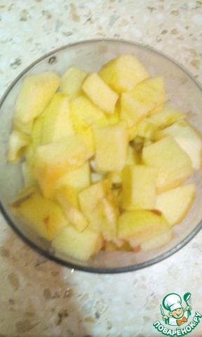 Яблоки очистить, подогреть в микро (а можно даже запечь 5 минут) и пюрировать. Подогреваем для того, чтобы, смешав с йогуртом, получилась тёплая смесь (в неё горячий желатин вливается, чтоб не схватился комками)