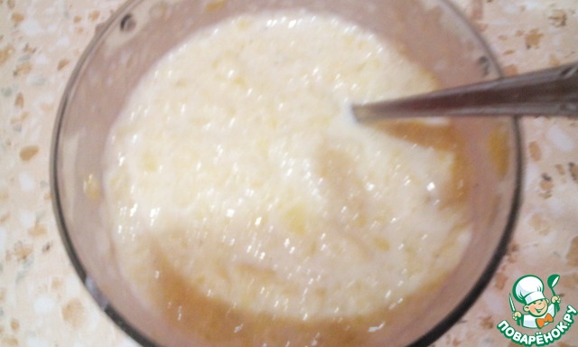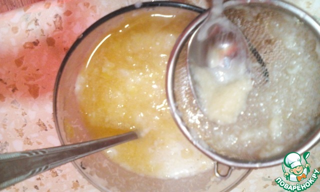 И выливаем в основу, помешивая. Я это делаю через ситечко, если есть не растворённые частички