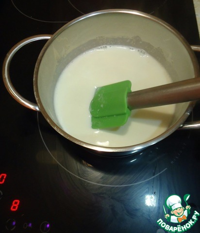 Вливаем ещё горячие сладкие сливки, перемешиваем